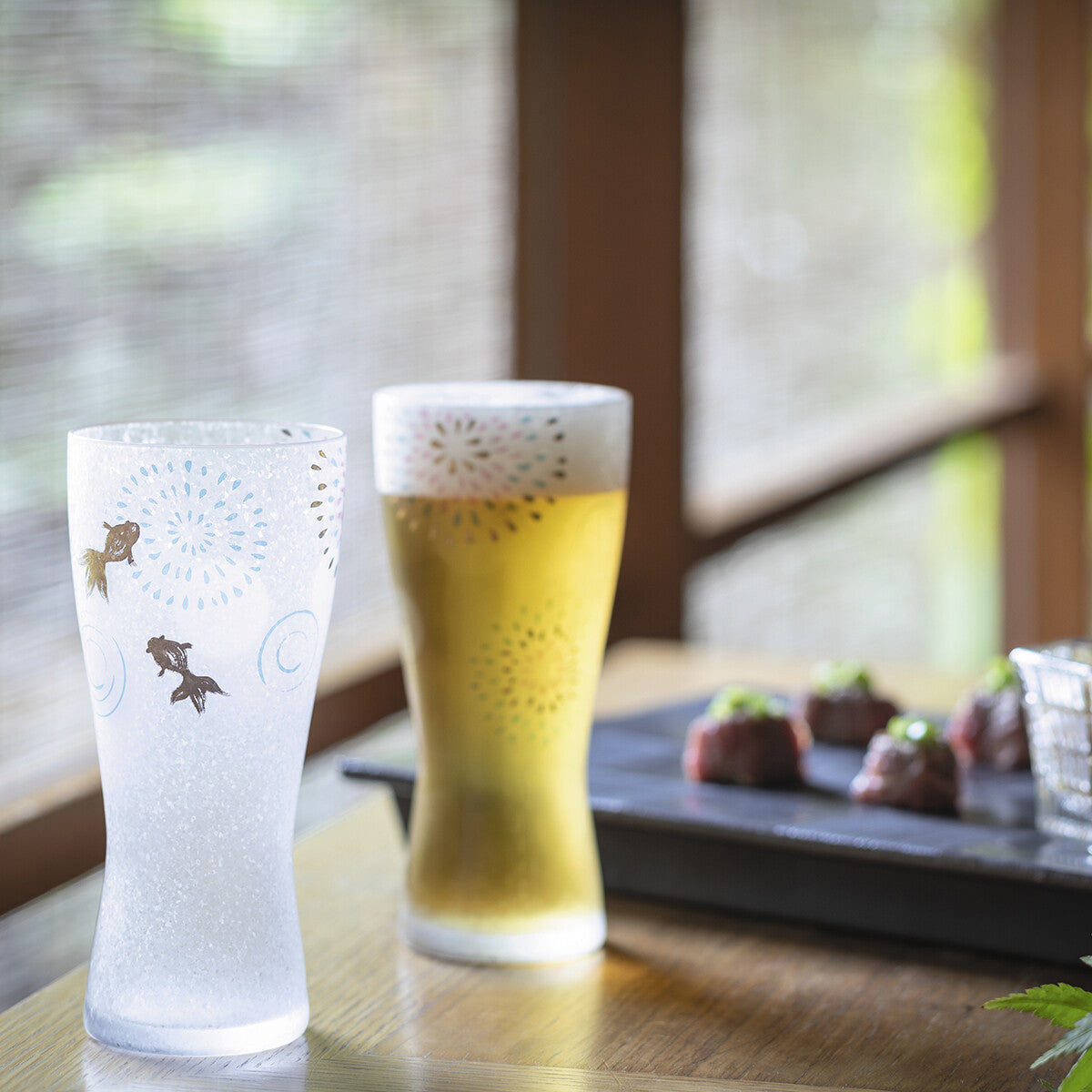 A modern and cool glass series with gold patterns on the surface of the glass that glitters like ice crystals.