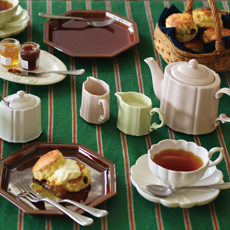“Pungency” teapot set, inspired by the elegant afternoon tea in England, is characterized as its oval shape with refined curves as well as the tangled vine like handle in a lively look.